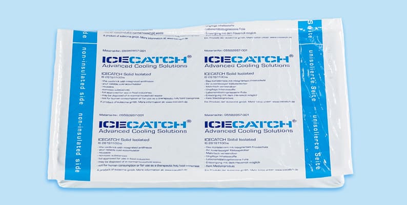 Der ICECATCH Solid Insulated Cool ist ein sich selbst isolierendes Kühlelement mit einer integrierten hydrophoben Isolationsschicht. Die Funktionsweise ist einfach und genial zugleich. Die Isolationsschicht verhindert, dass die Strahlungskälte des bei –18°C vortemperierten Kühlelemente den Produktraum unter +2°C abkühlt. Gleichzeitig gibt der innenliegende Kühlmittelspeicher beim Schmelzvorgang lediglich Kühlmittel mit der gewünschten Kälte von +–0°C frei. Diese umspült die Isolationsschicht und sorgt so dafür, dass die Produktraumtemperatur über einen Zeitraum von bis zu 120 Std. im gewünschten Temperaturbereich von +2°C bis +8°C bleibt.