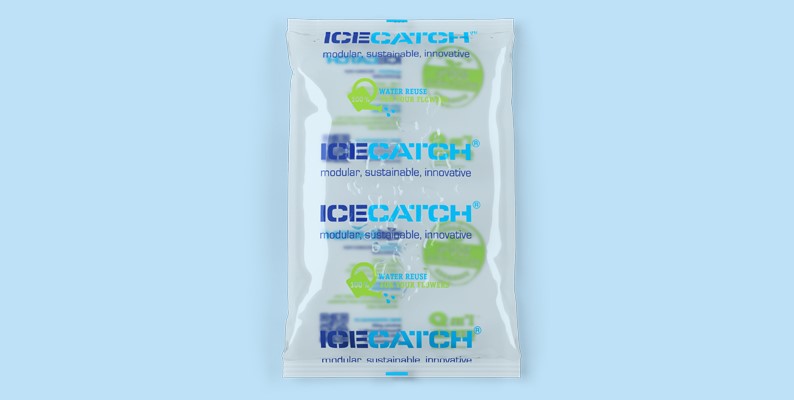 Das enthaltene UV-behandelte Leitungswasser ist frei von Mikroorganismen. Die Folie des ICECATCH® Waterpack besteht zu 100% aus Monofolie, welche zu mindestens 50% aus Abfällen von Zuckerrohr hergestellt wird.